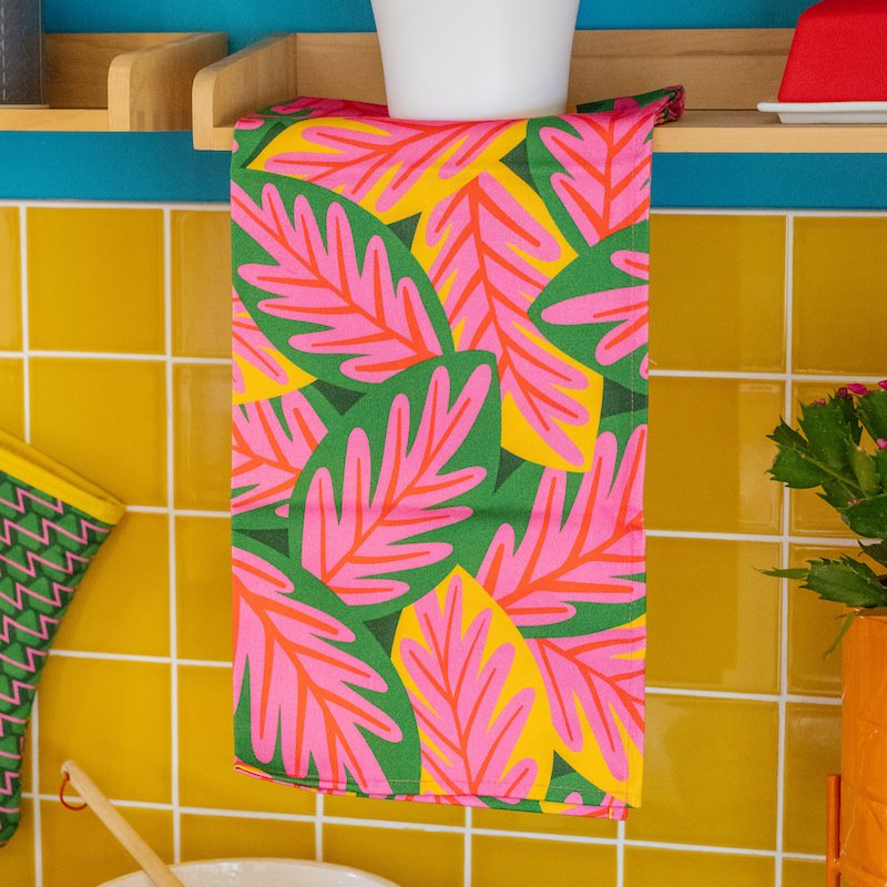 Brighten up your kitchen with this playful tea towel, featuring a bold, eye-catching print inspired by vibrant, other-worldly vegetation. Perfect for adding a touch of colour and whimsy to your daily chores!